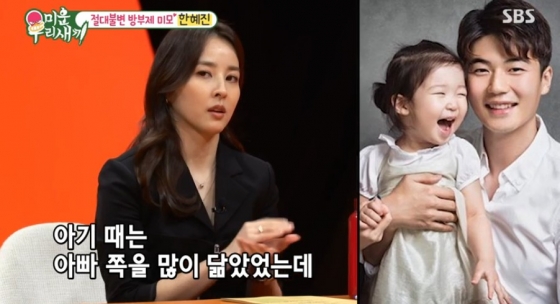31일 오후 방송한 SBS 예능 프로그램 '미운 우리 새끼'에서는 한혜진이 스페셜 MC로 출연했다. 지난 2013년 축구선수 기성용과 결혼해 초등학교 2학년생 딸 하나를 두고 있는 한혜진은 이날 방송에서 "(자녀를) 하나 밖에 못 만들었다. 후회된다"고 말문을 열었다.