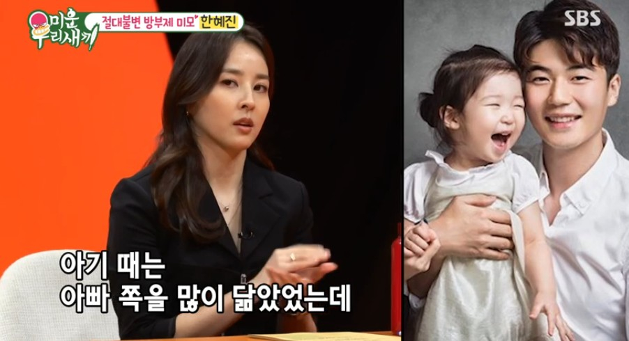 배우 한혜진이 딸의 외모가 점점 자신을 닮아간다고 밝혔다.