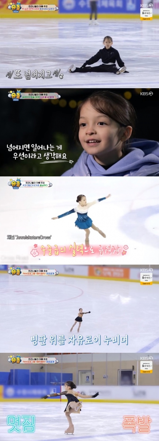 또 나은은 선생님의 지시에 따라 연습에 매진하며 10살이라고 보기 힘든 집중력을 자랑해 기대를 높였다. 스튜디오에서 VCR 영상을 지켜보던 최강창민은 "꼭 김연아 같다. 너무 멋있다"며 나은의 스케이팅 실력을 칭찬했다.