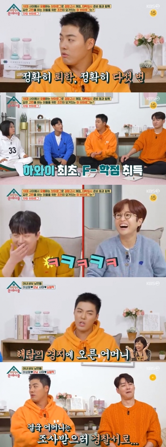 이어 그는 "퇴학 두 번째까진 어머니가 화내셨다. 세 번째는 익숙해진 것 같더라. 네 번째는 웃으셨다. 다섯 번째엔 박수치면서 웃으셨다. 살면서 그런 표정은 처음 본다"고 실토해 모두를 폭소케 했다.