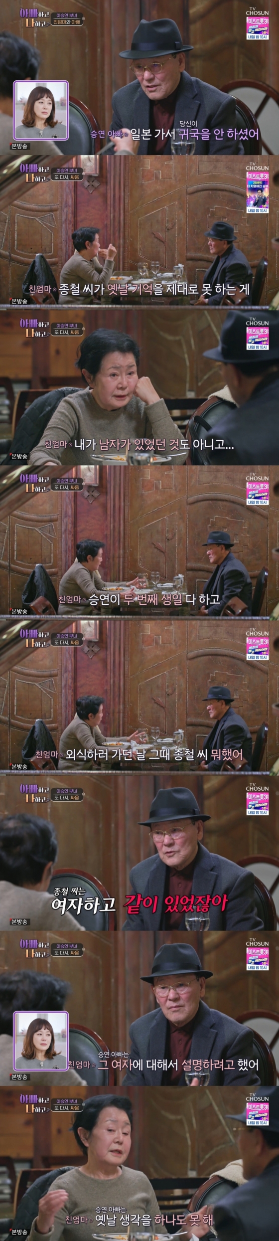 이에 친엄마는 "승연이를 안고 같이 갔다가 봤다. 승연 아빠는 그 여자에 대해서 설명하려고 했다. 승연 아빠는 옛날 생각을 하나도 못한다. (당신이) 옷장을 발로 차서 유리가 깨져가지고 발을 다친 것도 기억 난다. 자고 들어와가지고 내가 뭐라 그랬다고. 그거 기억 못하면은 사람 아니다"라며 당시 상황을 자세하게 설명했다.