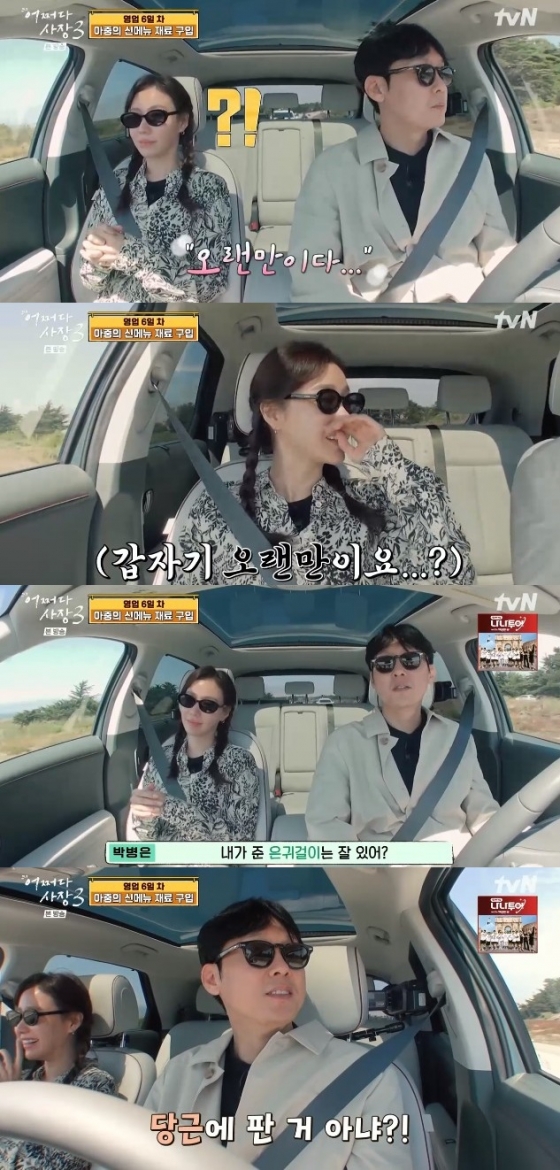 박병은은 운전을 하던 중 "오래만이다"라며 뜬금없이 인사를 건네 김아중을 당황케 했다. 이에 김아중은 "뭘 갑자기 오랜만이라고 하냐"며 박병은의 엉뚱한 모습에 웃음을 터트렸다.