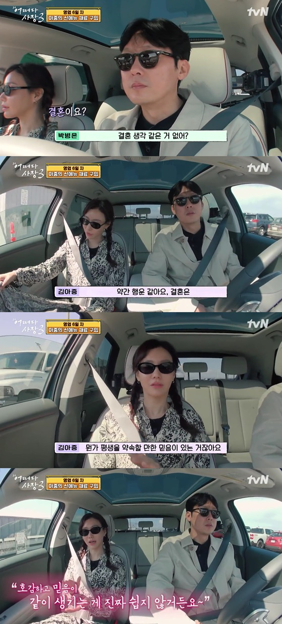 지난 4일 방송된 tvN '어쩌다 사장3'에서는 김아중이 결혼에 대한 바람을 드러내는 모습이 그려졌다.