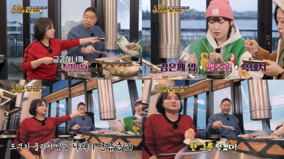 이어 검은깨 밥+멜 조림+흑돼지 조합으로 식사하는 히밥을 보며 박나래는 다시 한번 "내가 정말 궁금해서 그러는데 딱 한 입만! 지적 호기심을 참을 수가 없네"라며 또다시 한 입만을 신청하는데.