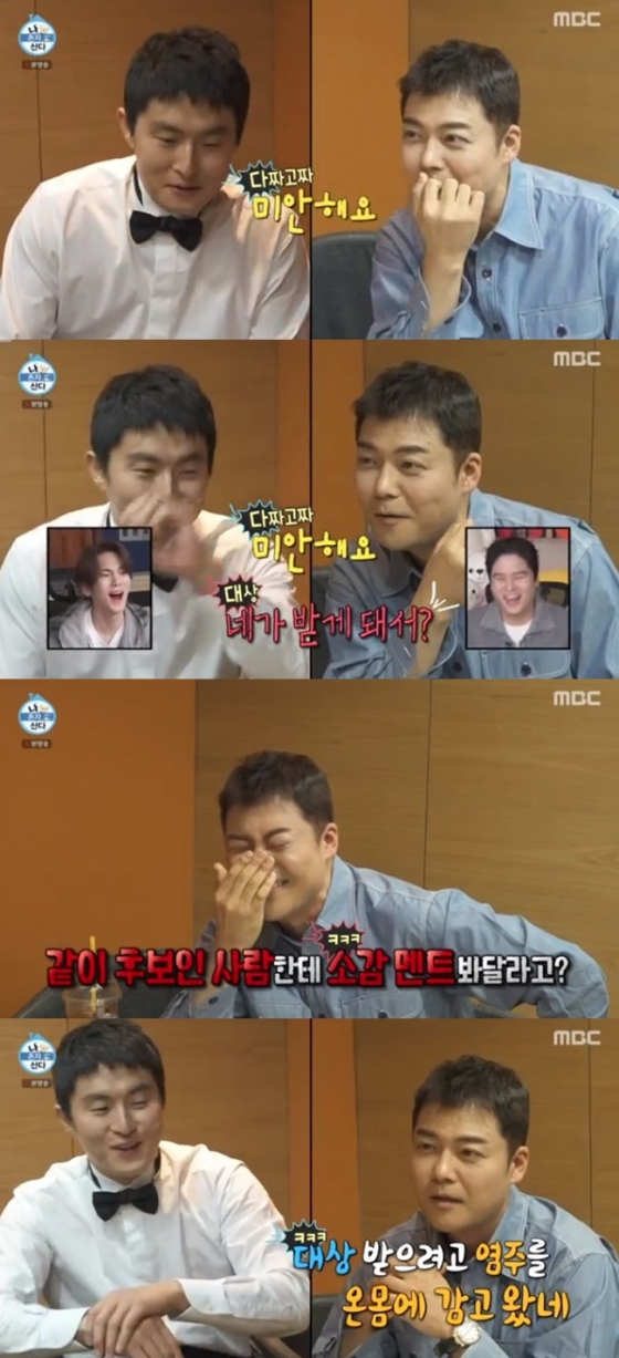 전현무는 "같은 후보인 사람한테 소감 멘트를 봐달라고?"라며 기안84의 당당함에 웃음을 터트렸다. 이에 기안84는 "모르겠어, 나도. 형은 잘하니까. 혹시 (내가) 받을 수도 있으니까"라며 머쓱한 듯 웃었다.