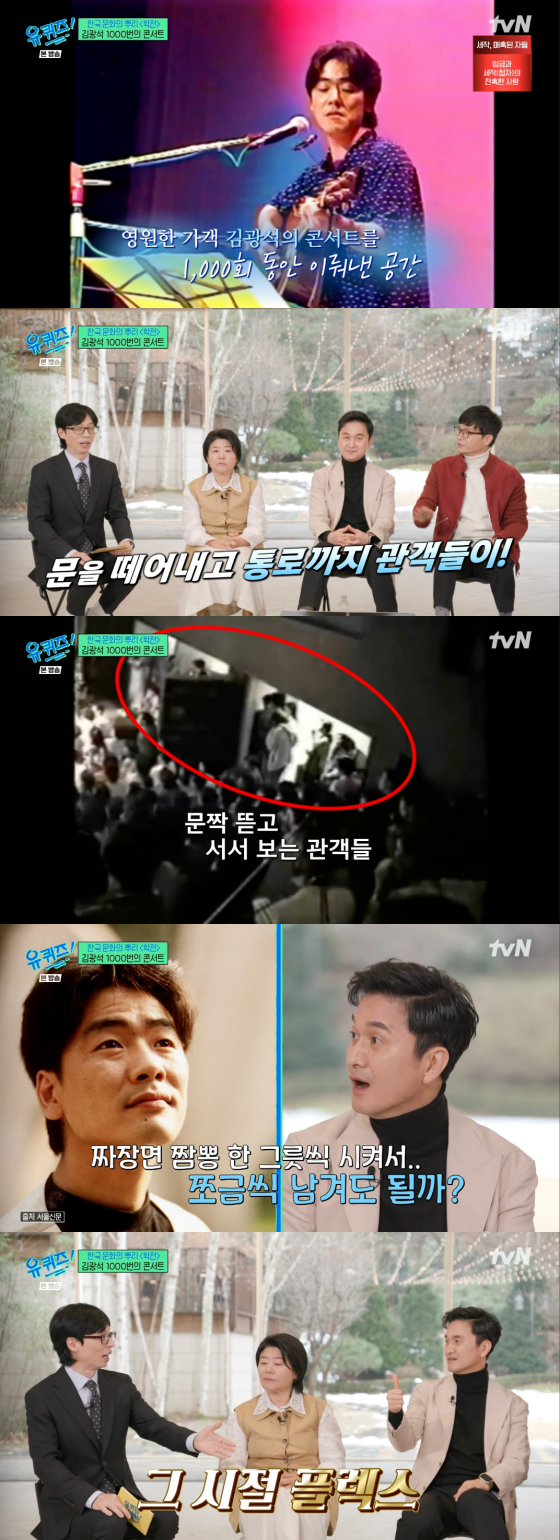 장현성은 이날 자신은 당시 객석 정리 아르바이트를 했다며 "광석이 형님 공연하실 때는 사람들이 줄을 섰다. 180명 객석에 300명이 앉았다"고 전했다. 이어 문짝을 뜯고 통로에서, 故김광석의 바로 앞 혹은 뒤에 앉아서까지 공연을 관람했다 덧붙여 놀라움을 자아냈다.