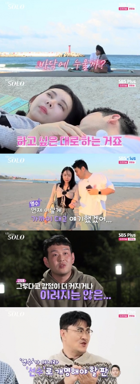 이날 방송에서 영수와 정숙은 랜덤 데이트 장소인 바닷가로 향했다. 영수는 "지금 이렇게 랜덤으로 나간 데이트에서 '진짜 원했는데 이 상황이 된 커플'은 저희 제외하곤 없을 것 같다"며 운을 뗐다.