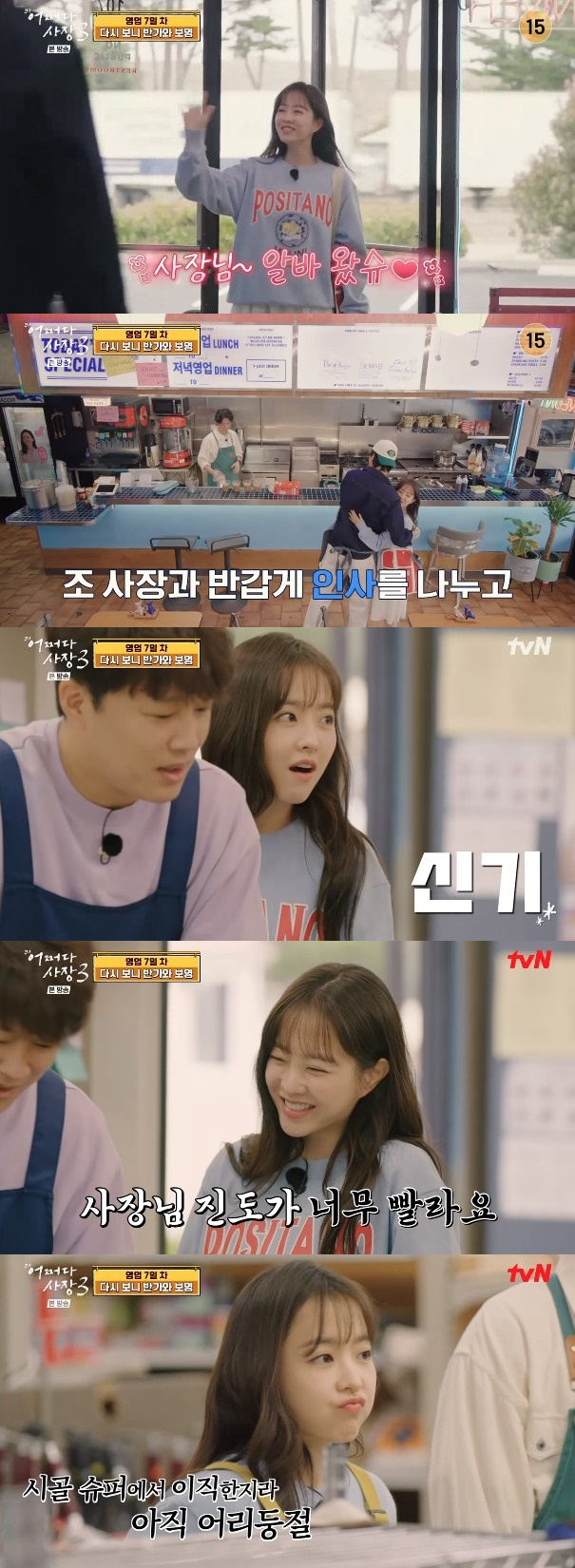'어쩌다 사장3'에 '경력직 알바'로 투입된 배우 박보영이 오랜만에 만난 조인성에 애교 섞인 인사를 건넸다.