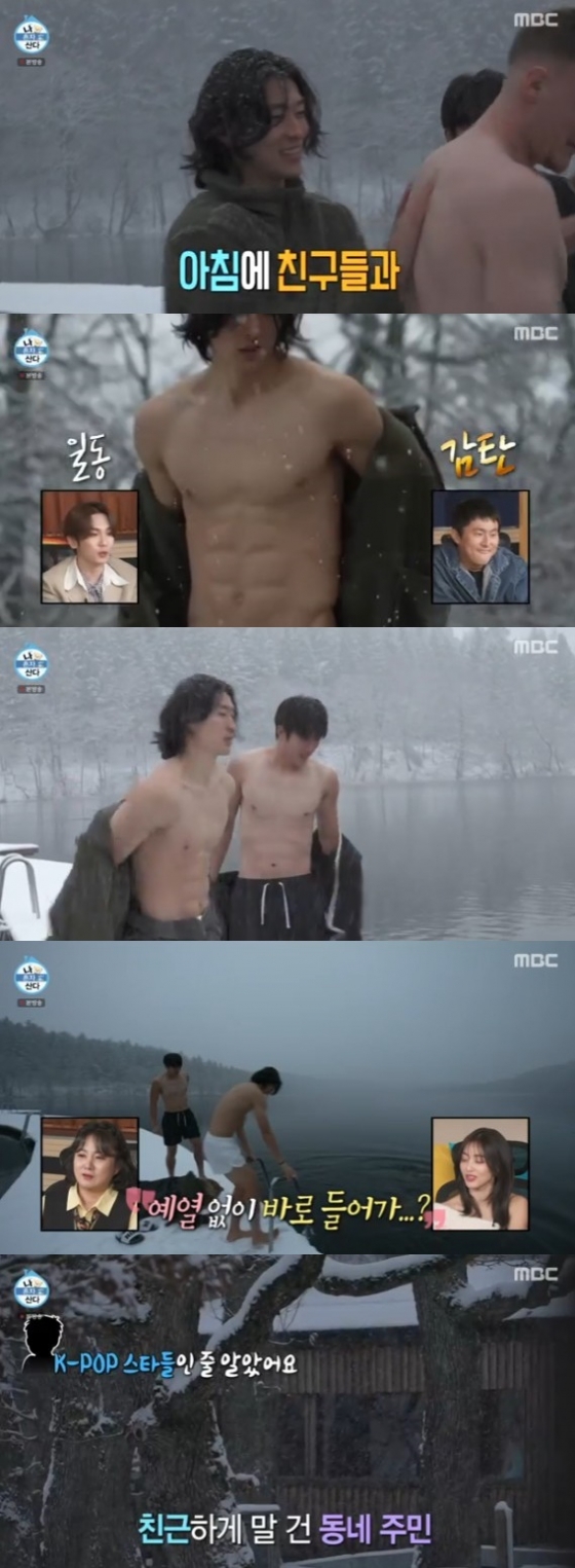 축구선수 조규성이 극기 훈련을 하기위해 찾은 덴마크 호수에서 명품 복근을 드러내 시선을 사로잡았다.