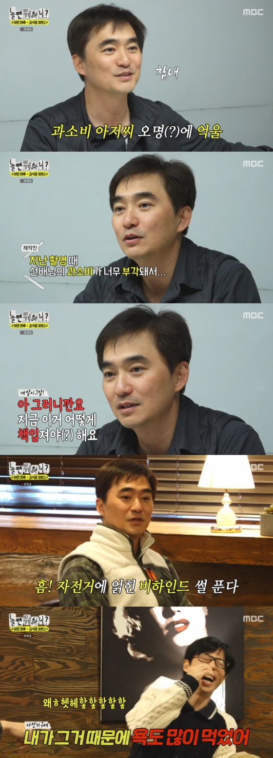 이와 관련해 김석훈은 "지난 촬영 때 과소비가 너무 부각됐다"라는 제작진의 말에 "그러니까요. 지금 이거 책임져야 한다. '놀면 뭐하니?' 전에 그런 사람이 아니었는데 그날 어떻게 그렇게 돼가지고. 참내. 억울하더라"라고 하소연했다.