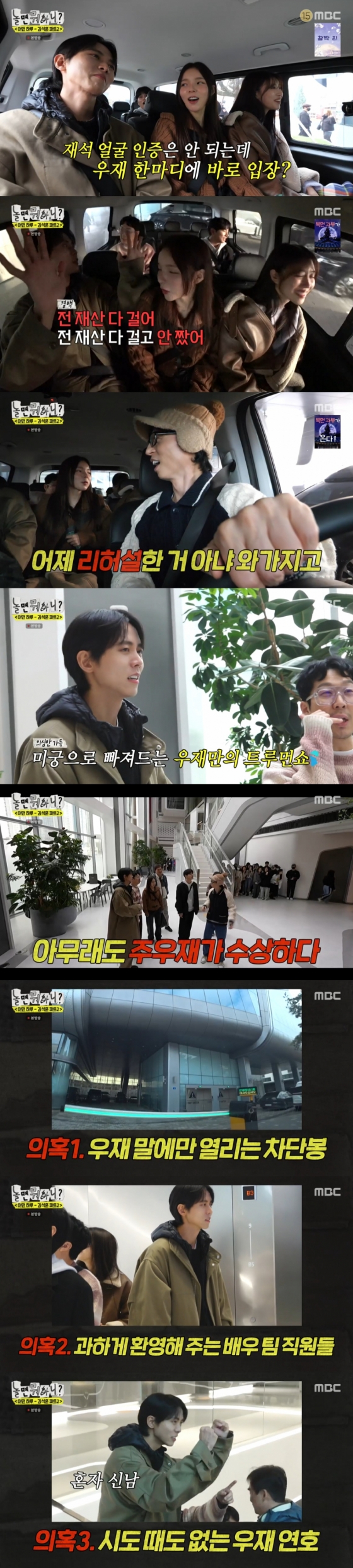 이에 주우재는 "전 재산 다 걸어. 전 재산 다 걸고 안 짰다. 방송 역사상 길이길이 남을 장면이긴 하다. 나 진짜 안 짰다"라며 해명했고, 유재석은 "어제 리허설한 거 아니냐. 너무 작위적이다", 김석훈은 "유재석도 못 들어간다 이거지"라며 웃었다.