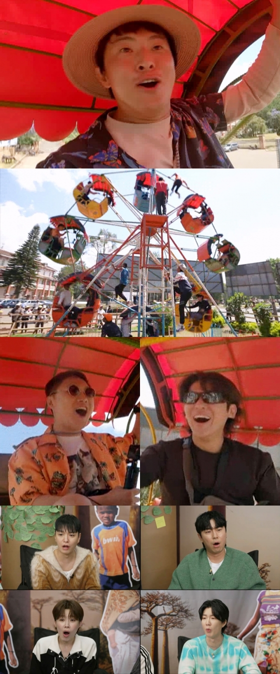 '태어난 김에 세계일주 시즌3(태계일주3)' 기안84, 빠니보틀, 덱스가 '마다가스카르 근육맨'이 맨손으로 돌리는 관람차에 탑승한다. 상상을 뒤집는 '마다랜드'의 클라스에 놀란 세 사람의 모습이 눈길을 모은 가운데, 도파민이 폭발한 스릴 만점 현장에 기대가 쏠린다.