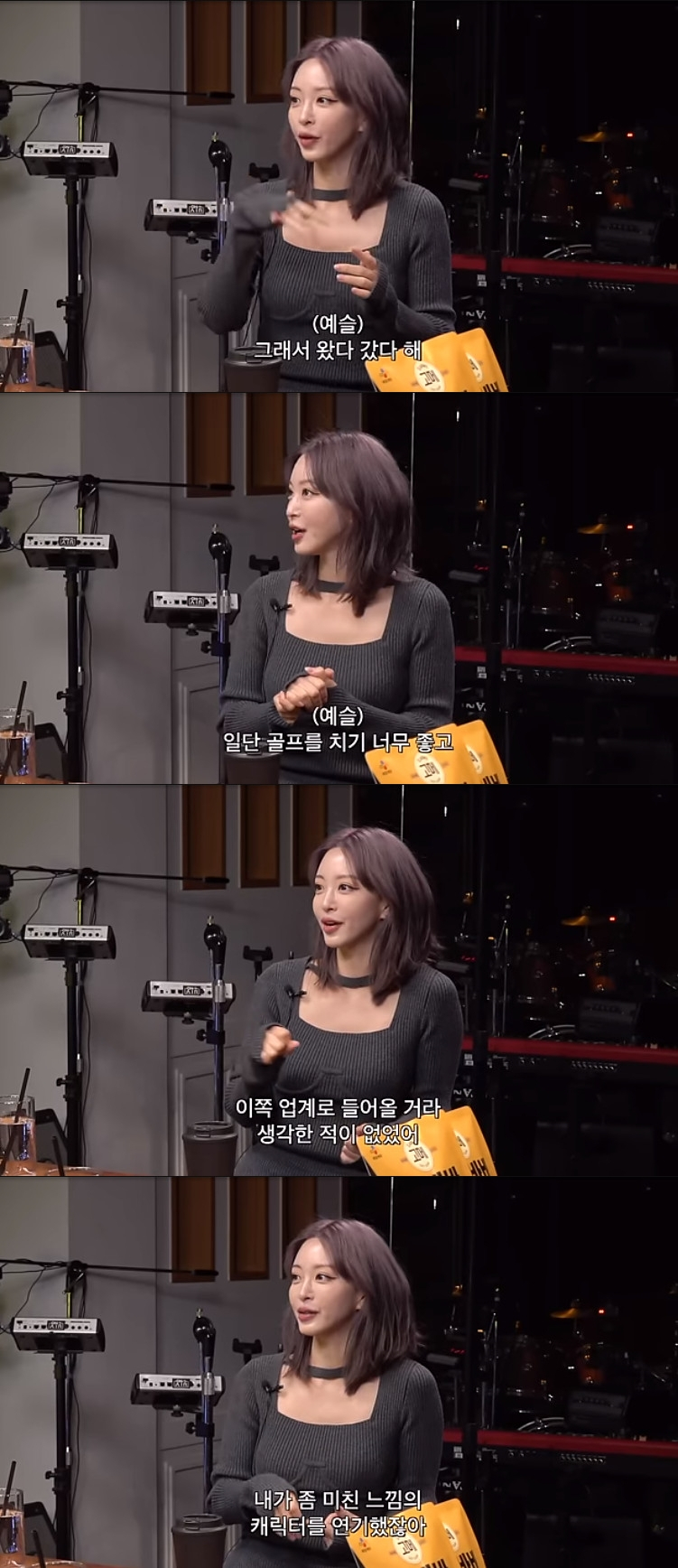 또한 한예슬은 배우로 데뷔하게 된 계기도 밝혔다. 그는 "아무 계획이 없었다. 이쪽 업계로 들어올 거라고 생각한 적도 없고, 원하지도 않았다. 카메라 앞에 서는 게 부끄러웠고, 사실 연기를 싫어했다. 나는 내가 재능 없는 배우라고 생각했다"며 "'논스톱'이 내 데뷔작이었는데 실력이 좋지 않았다. 근데 다른 캐릭터들이랑 좀 달랐던 것 같다. 그 작품을 통해 유명해져서 이 작품, 저 작품을 하게 됐던 거다. 전진 씨, 봉태규 씨, 현빈 씨 등과 함께 했다. '논스톱' 멤버들이 어떻게 지내는지 궁금하다"라고 말했다.