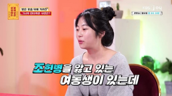 '무엇이든 물어보살'에서 조현병을 앓고 있는 여동생 때문에 고민인 사연자가 자신의 심경을 직접 전했다.