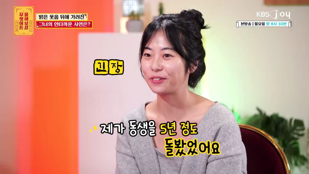 15일 KBS Joy에서 방송된 '무엇이든 물어보살' 250회에서는 어린 나이에 부모님을 대신해 조현병을 앓고 있는 여동생을 5년 동안 돌보았던 사연자가 이제는 자신의 삶을 살고 싶다며 보살집의 문을 두드렸다.