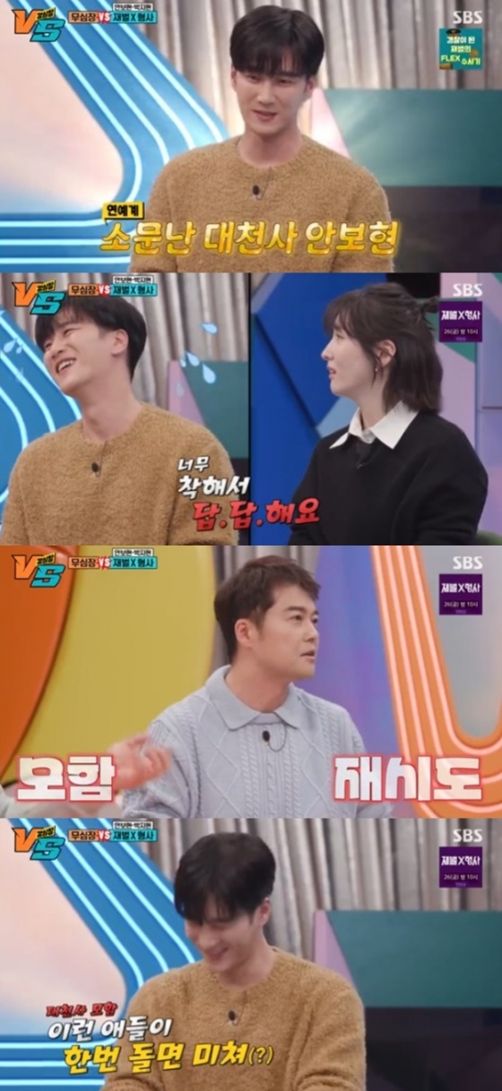이날 방송에서 전현무는 "주변에서 안보현 씨 이야기를 되게 많이 듣는다. 근데 너무 착하다고 하더라. 그런 이야기가 너무 많이 들린다"며 안보현의 미담에 대해 거론했다. 이에 박지현은 "(안보현이) 너무 착해서 답답하다. 불만 자체가 어디서든 아예 없는 사람 같다"며 안보현의 인성을 인정했다.