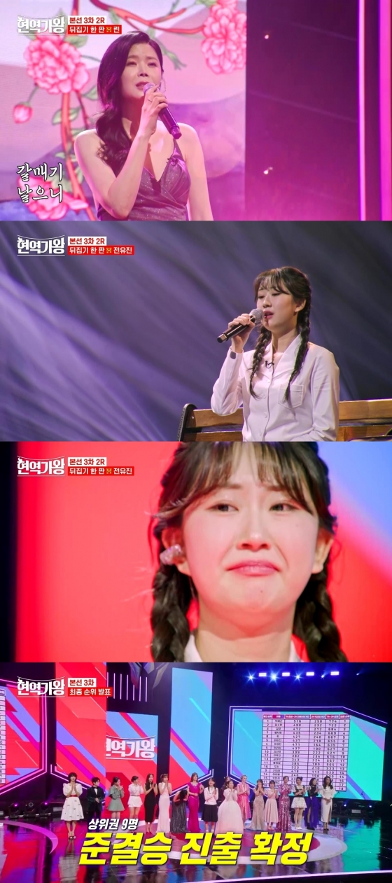 이날 방송에서는 본선 3차전 '뒤집기 한판'과 '패자부활전'을 통해 강혜연-김다현-김산하-김양-두리-류원정-린-마리아-마이진-박혜신-별사랑-윤수현-전유진-조정민이 천신만고 끝 준결승 최종 진출자에 이름을 올려 기쁨과 환희, 아쉬움이 뒤섞인 눈물을 펑펑 쏟게 했다.