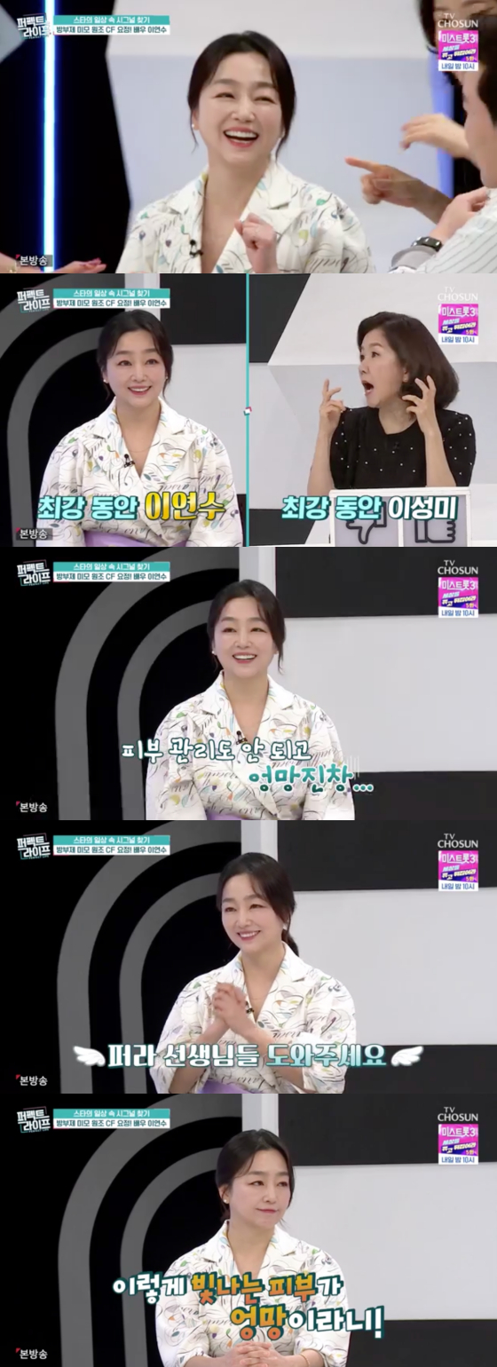 이연수는 이날 여전한 방부제 미모로 스튜디오를 놀라게 했다. MC 현영은 이연수를 보자마자 "냉장고에서 주무시냐"고, 이성미는 "실례가 안 된다면 한번 만져봐도 되냐"고 말해 웃음을 자아냈다.