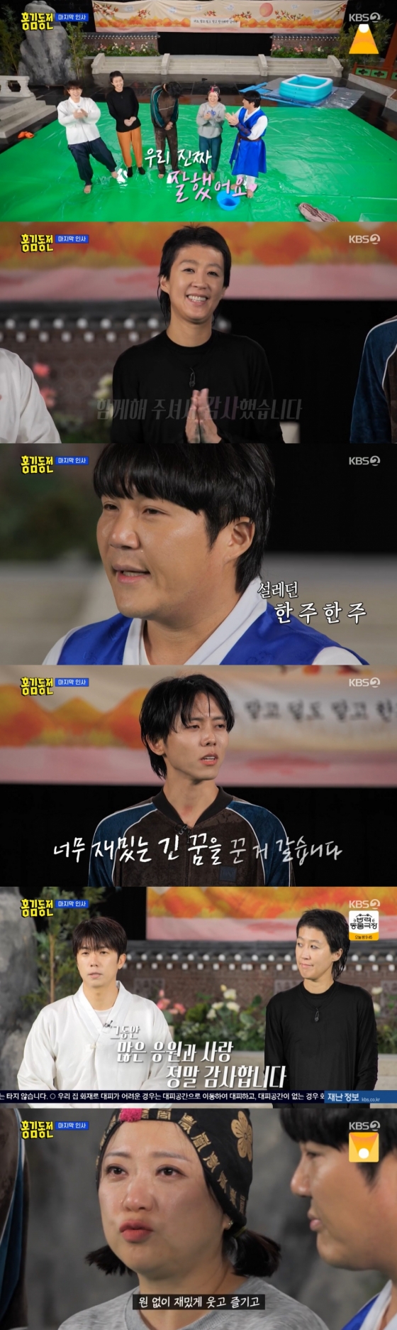 조세호는 "무엇보다 시청해주시고 응원해주신 시청자 여러분, 또 프로그램을 하면서 팬카페가 생긴 건 새로운 경험이었다. 멤버들에게도 고맙다는 인사를 하고 싶다. 녹화를 할 때 매번 설레었다. 분명히 어느 곳에서 멤버들, 제작진들과 함께 웃으면서 녹화할 수 있는 날이 분명히 오지 않을까 싶다"라며 '홍김동전' 시청자들에게도 감사의 인사를 전했다.