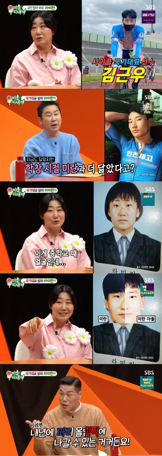 '미운 우리 새끼'라미란이 국가대표 사이클 선수인 아들 김근우에 대해 언급했다.