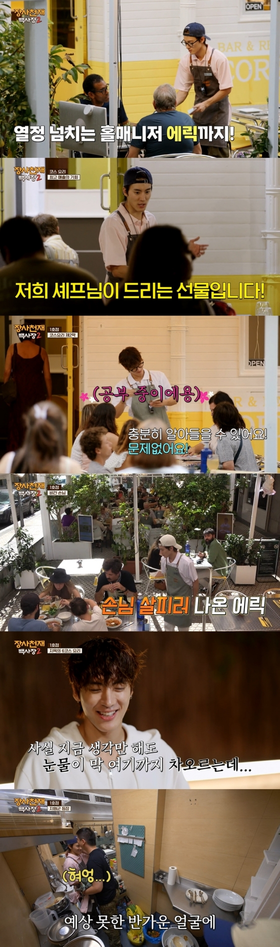 이렇듯 에릭은 자연스레 묻어나는 애교와 아무리 바쁜 상황에서도 미소와 매너를 잃지 않는 모습으로 '장사천재 백사장2' 속 대체 불가 홀 매니저로 활약, 시청자들의 매주 일요일 저녁을 따뜻하게 물들이고 있다.