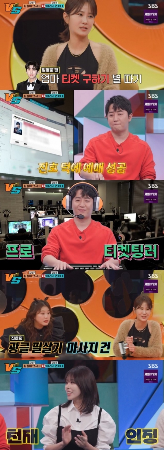 이에 홍진호는 "티켓팅에 성공했다"며 뿌듯한 표정을 지어 감탄을 자아냈다. 김지민은 "고급 인력이다. 손으로 할 줄 알았는데 마사지 건을 들고 와서 하더라"며 티케팅 성공 비법을 공개했다.