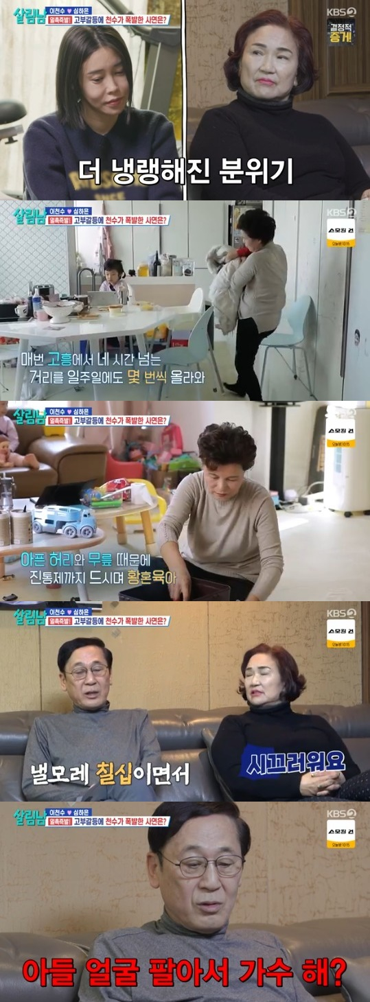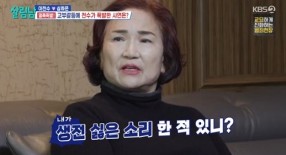 24일 방송된 KBS 2TV 예능 프로그램 '살림하는 남자들 시즌2'에는 고부갈등을 해결하기 위해 아내 심하은을 데리고 본가를 방문한 이천수의 모습이 담겼다. 이날 방송에서 이천수는 희야 여사에 "중간에서 힘들다. 하고 싶은 말은 나를 통하지 말고 직접 해라"며 갑작스러운 본가 방문 이유를 설명했다.