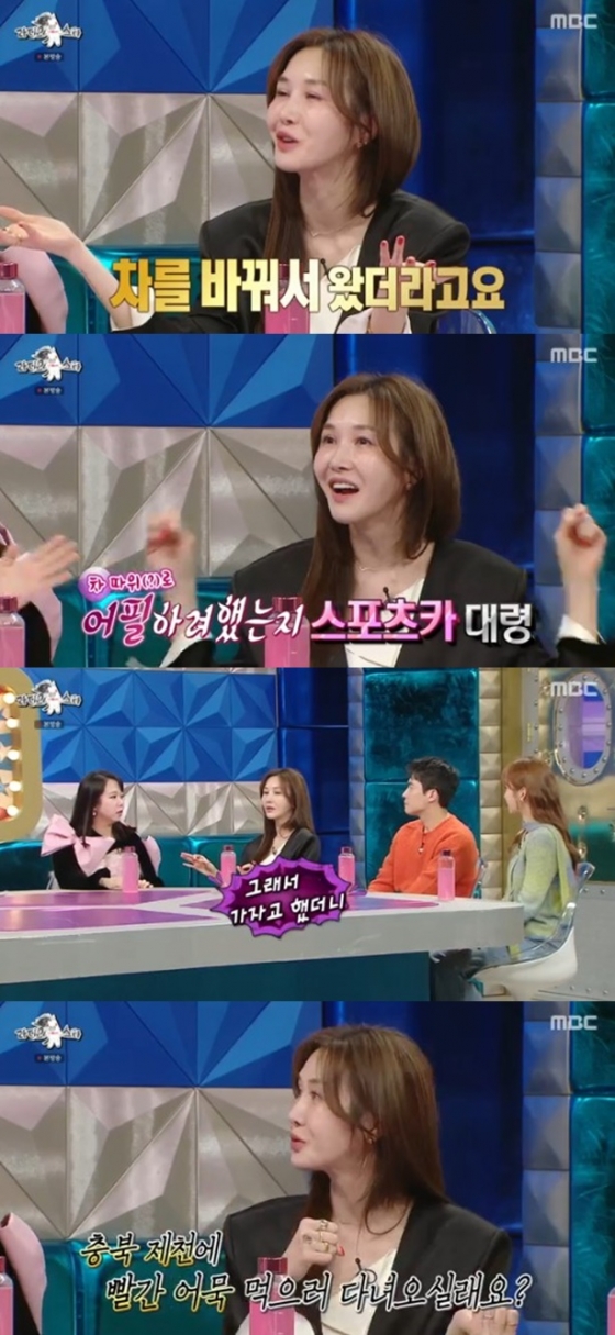 또 "대화를 핑계로 늦은 밤 찾아왔다. 차를 바꿔서 왔더라. 차 따위로 어필하려 했는지 스포츠카를 몰고 왔다"고 너스레를 떨어 모두를 폭소케 했다. 이어 "스포츠카를 끌고 와서 어묵을 먹으러 가자고 하더라. 소탈한 모습에 반전 매력을 느꼈다"고 덧붙였다.