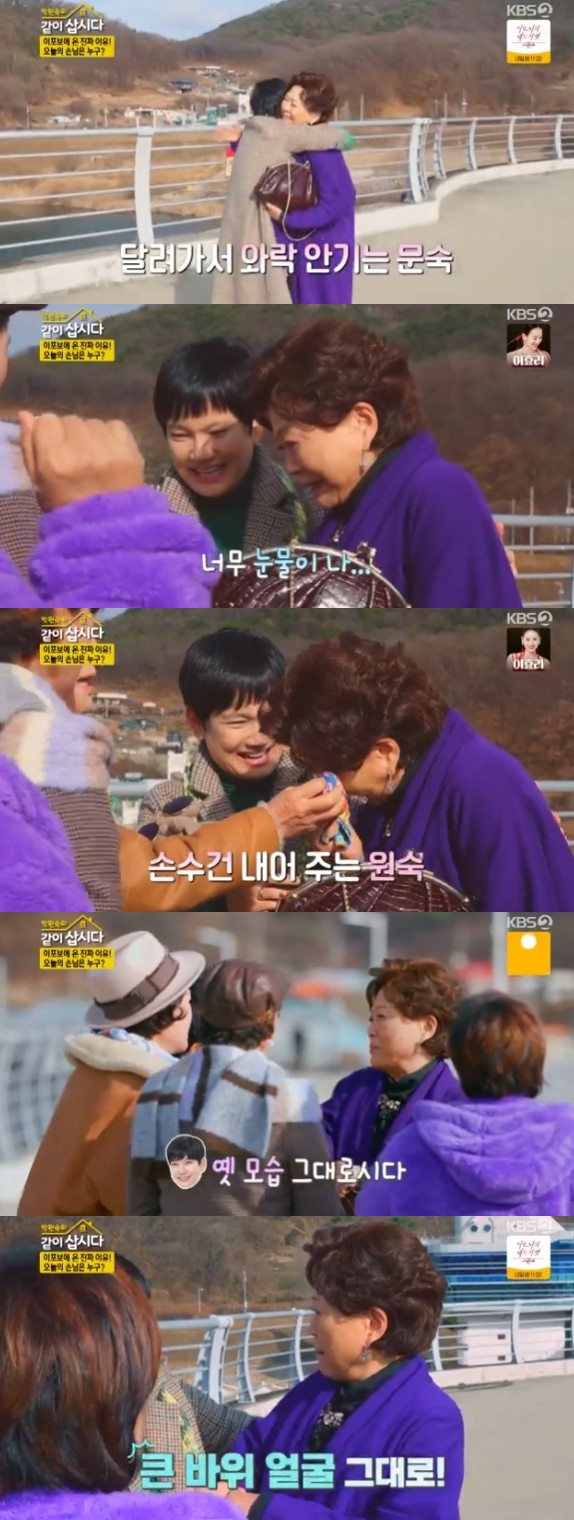 이날 방송에서 자매들은 멀리서 걸어오는 김용림의 모습을 발견하고 발걸음을 재촉했다. 특히 안문숙은 한달음에 달려가 김용림의 품에 안겨 반가움을 전했다.