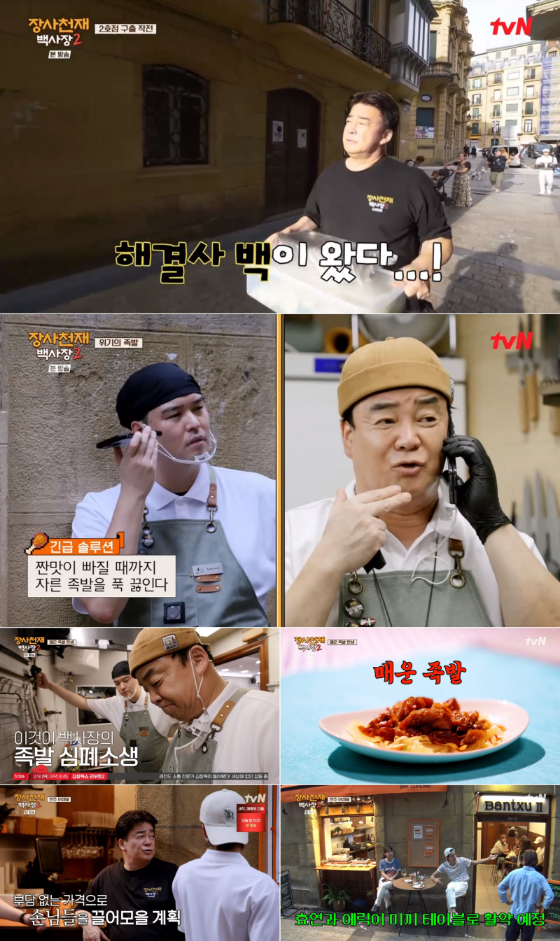 '장사천재 백사장2' 미식의 도시 스페인 산 세바스티안에 '백종원 매직'이 펼쳐졌다. 이장우의 야심작, 신메뉴 '족발'의 실패로 망해가는 2호점을 심폐소생하는 데 성공했다. 뿐만 아니라 백종원의 퍼포먼스 전략을 총망라한 '반주Ⅱ'는 산 세바스티안에서 최고의 핫플레이스로 등극했다.