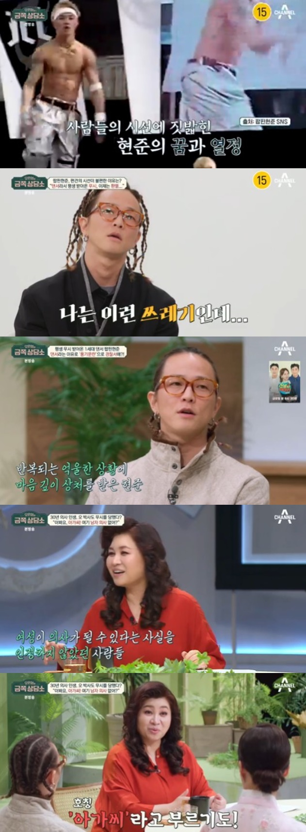 이에 오은영은 "벽을 깬 사람이기 때문에 편견이 많았던 것 같다. 댄서에 대한 인식이 많이 개선됐지만 현준 씨가 활동했을 땐 스트리트 댄스가 대중문화로 자리잡는 과도기였다. 그래서 편견과 오해를 많이 받았던 것 같다"라고 분석했다.