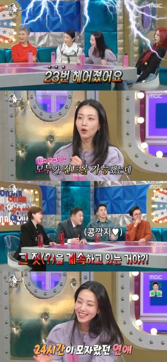 배우 김신록이 연극 배우인 박경찬과 연애를 하며 23번의 이별을 겪었다고 밝혔다.