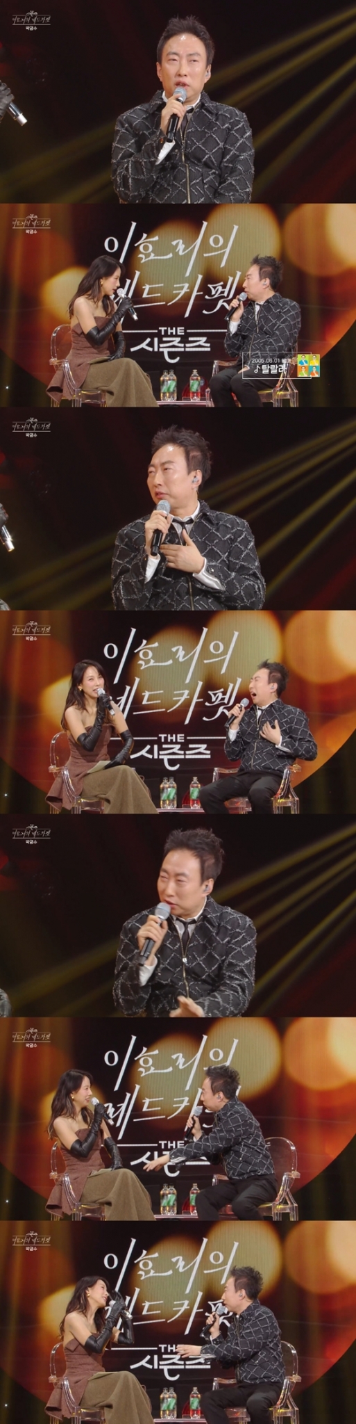 이에 이효리는 "저 그냥 집에서 죽을래요"라고 재치 있게 응수했고, 박명수는 "아니, 죽으라는 얘기가 아니고. 혹시라도 오래 방송을 해서, 무대에서 쓰러지면 겸사겸사 좋은 일이 있다는 거예요"라고 설명했다.