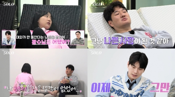 앞서 두 사람은 영자의 선택으로 '최종 선택'을 앞두고 마지막 데이트를 했던 터. 하지만 영자는 광수의 끝없는 '감성 고백 공격'으로 차이점을 확인한 뒤, 제작진과의 인터뷰에서 "대화가 핑퐁핑퐁 이어져야 하는데 자기 얘기만 계속한다. 그래서 자꾸 텐션이 떨어진다"는 속내를 드러냈다.
