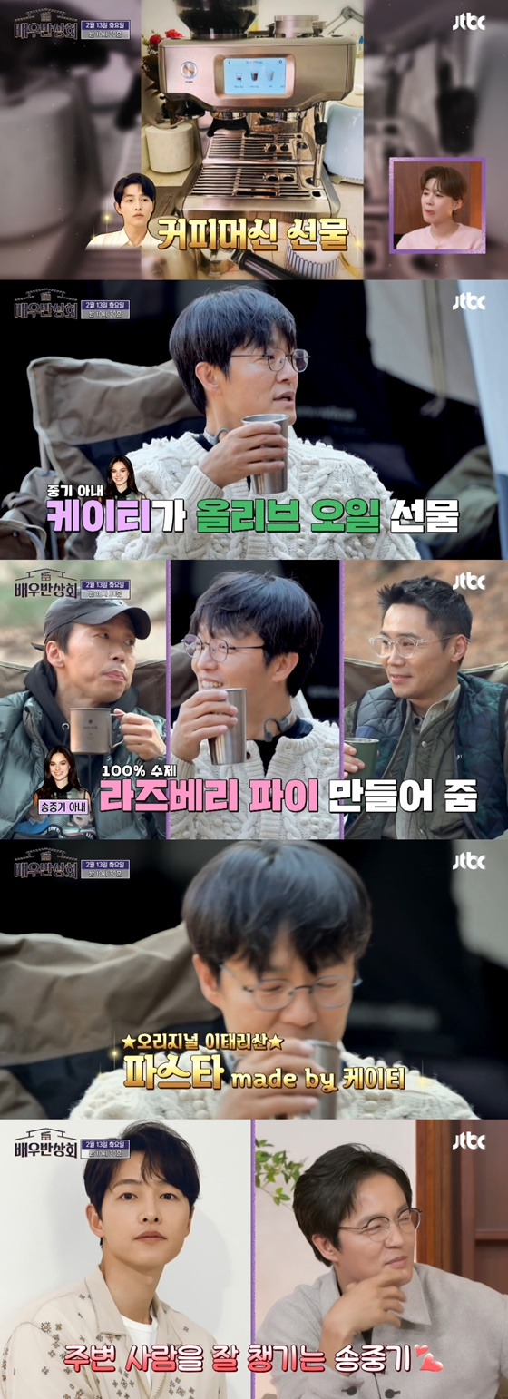 조한철은 "나는 케이티가 올리브오일 진짜 좋은 거 줬다"며 송중기 아내와의 친분을 과시하기도 했다. 윤병희 역시 "나는 케이티가 라즈베리 파이 만들어 줬다"고 밝혔다.