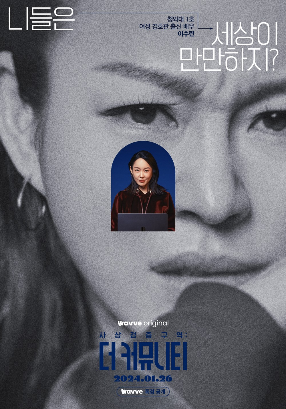 '국내 1호 대통령 여성 경호원 출신' 배우 이수련이 '사상검증구역: 더 커뮤니티' 속 기자로 선발된 첫 날부터 눈물을 흘 궁금증을 유발했다.