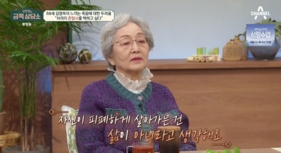 올해로 88세인 배우 김영옥이 죽음에 대한 고민을 털어놓았다.