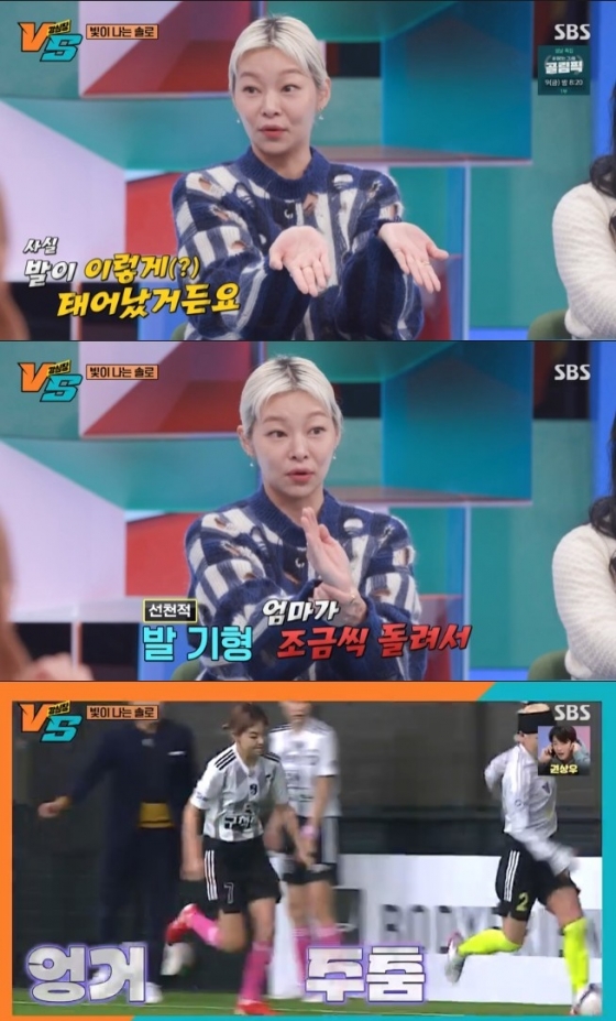 그러면서 "그래서 엄마가 조금씩 돌렸다"며 "지금도 뛰는 폼이 안 좋다"고 전했다. 이에 MC 엄지윤은 "근데 언니는 모델도 하고 축구 선수도 하고 대박이다"며 감탄했다.