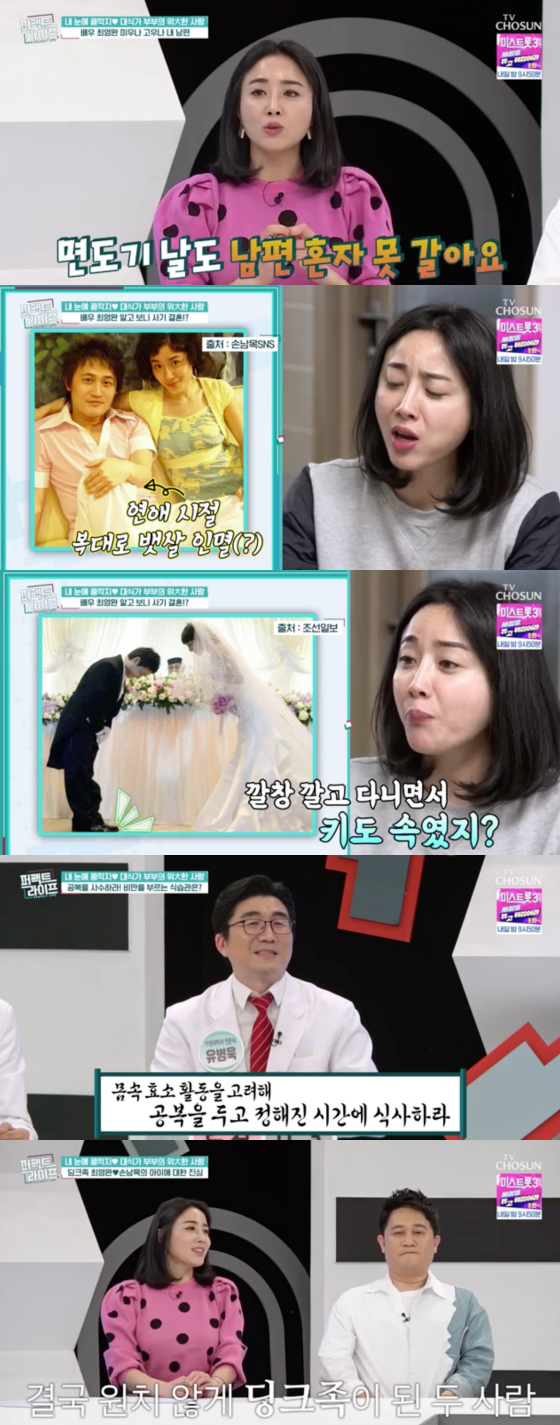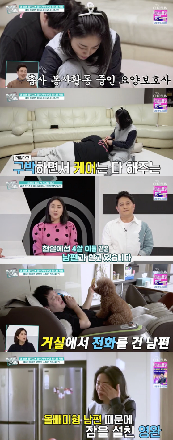 7일 오후 방송된 TV CHOSUN '퍼펙트라이프'에서는 드라마 '부부클리닉 사랑과 전쟁'의 간판 배우 최영완과 연출가인 남편 손남목이 함께 출연해 결혼 17년 차 부부의 일상을 공개했다.
