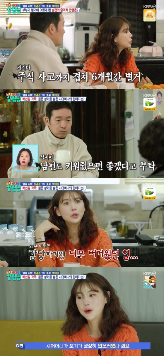 7일 방송되는 KBS 2TV '살림하는 남자들 시즌2'(이하 '살림남')에서 박여원은 돌아가신 시어머니를 대신해 평소 친하게 지내는 시어머니의 친구에게 속상함을 털어놨다.