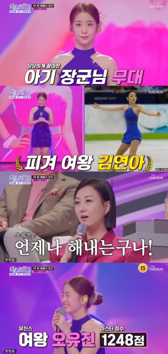 오유진의 무대가 끝나자 마스터 현영은 "유진 양을 보면 누군가 떠오르는 사람이 있다. 피겨 여왕 김연아 선수"라고 평가해 마스터들의 공감을 자아냈다. 이어 "'저 작은 몸으로 어떻게 해내지?' 했는데 막상 무대가 시작되면 트리플악셀에 하고 싶은 거 다하고, 멋지게 연기한 후 끝나면 '감사합니다'라고 착하게 인사하는 모습이 마치 김연아 선수가 큰 무대를 끝내고 메달을 따는 담대함 같다"라고 극찬했다.