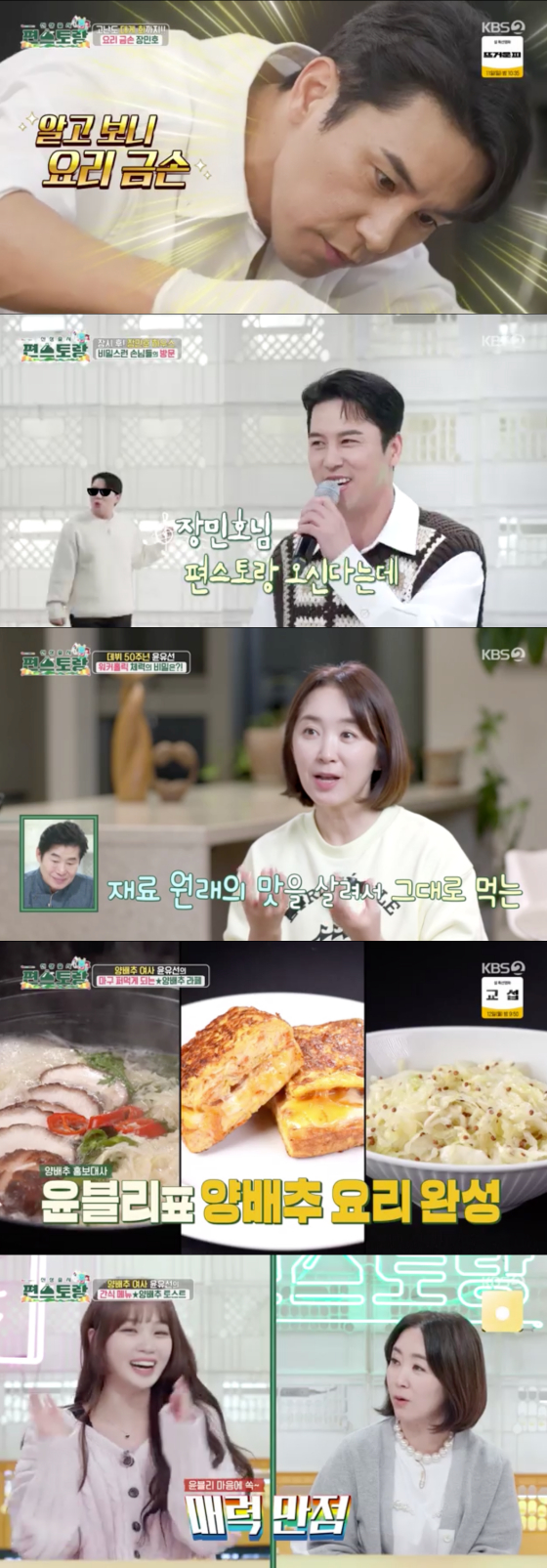 9일 방송된 KBS 2TV 예능 프로그램 '신상출시 편스토랑'에서는 데뷔 50년차 배우 윤유선과 '트로트 신사' 가수 장민호가 출연했다.