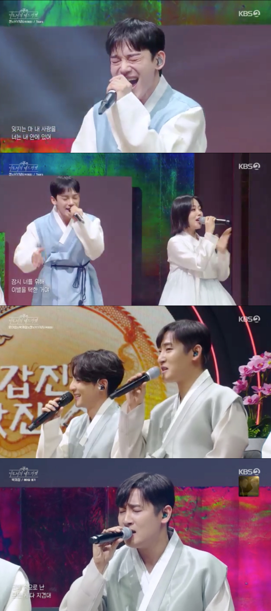 가수 첸과 흰이 팽팽한 초고음 대결을 선보였다.