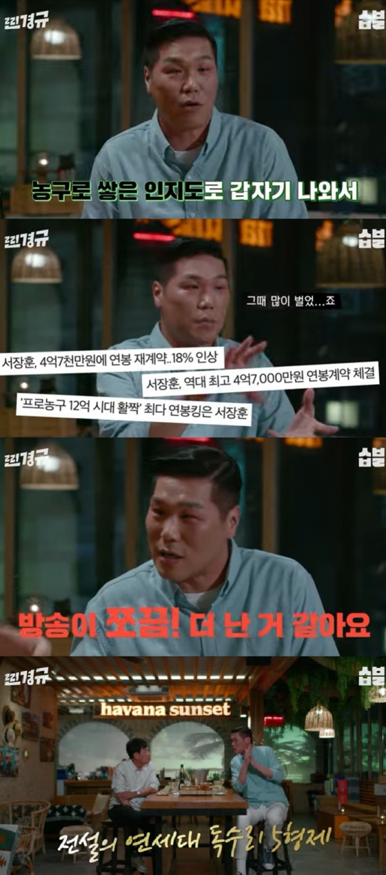 방송인 서장훈이 농구 선수 시절과 현재 수입에 대해 밝혔다.