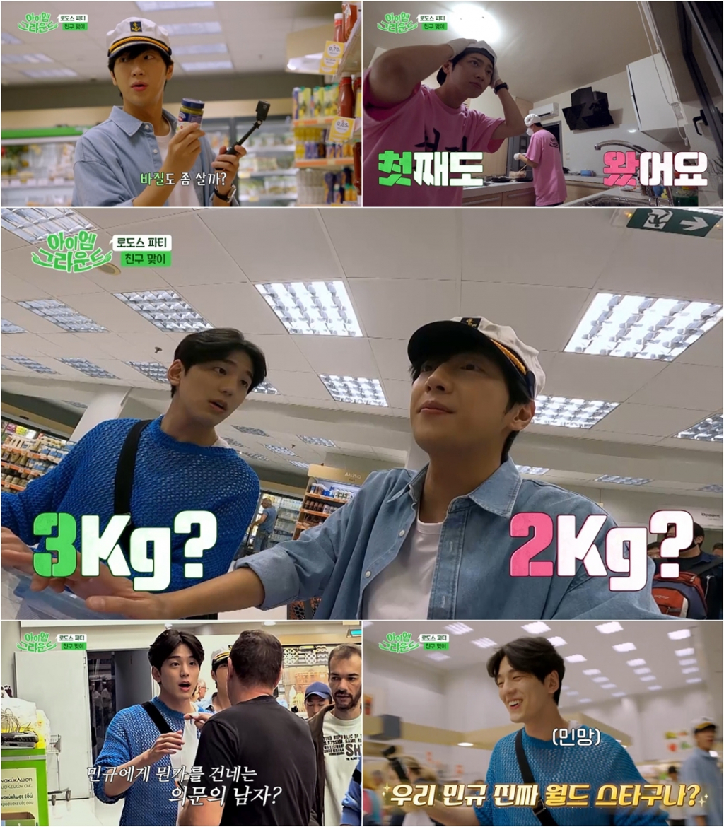 한편 '新여심 킬러' 김민규는 여심 뿐만 아니라 전 세계 남심까지 사로잡으며 '글로벌 치명남'에 등극했다. 김민규는 이상엽과 함께 파티 장보기를 하고 이동하던 중 다가온 한 의문의 남성으로부터 선물 꾸러미를 한아름 건네받았다. '보조개 왕자' 김민규가 남심까지 쓸어담은 특별한 사연 또한 '아이엠그라운드' 4회에서 만날 수 있다. 이상엽은 "너 진짜 월드 스타구나. 새삼 또 느낀다"라며 감탄했고, 김민규는 쑥스러움을 감추지 못했다.
