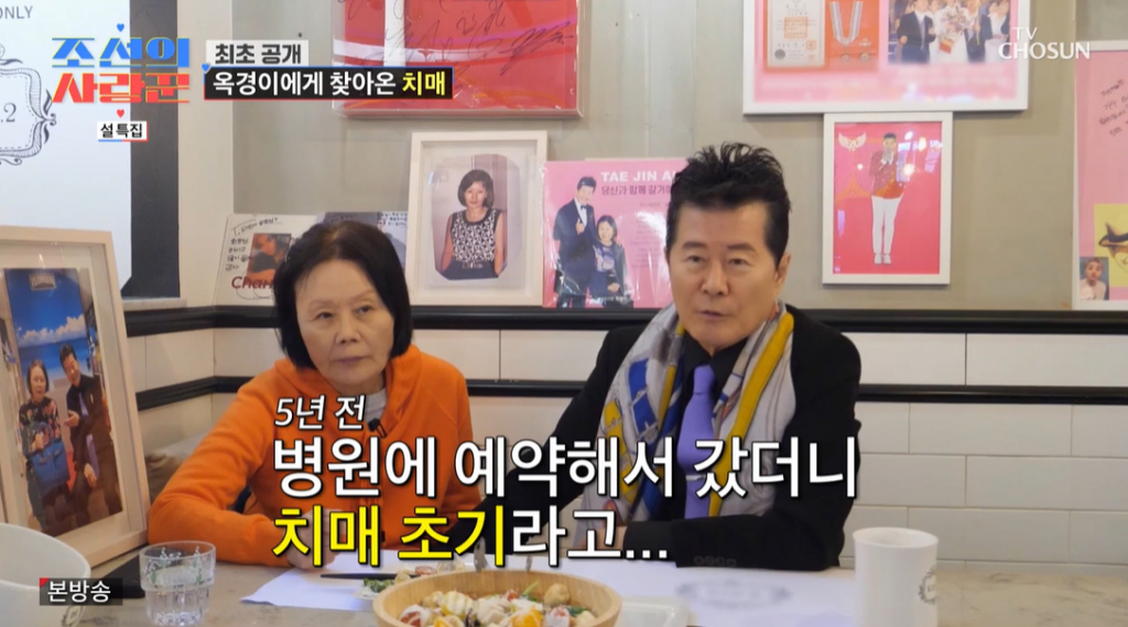 이날 태진아는 "5년 전에 똑같은 걸 자꾸 물어보더라. 집에서 화장실을 갔다 오면 나보고 '어디 갔다 왔어요?'라고 물었는데 좀 있다가 또 '어디 갔다 왔어요?'라고 해서 느낌이 이상했다. 5년 전 병원에 예약해서 갔더니 치매 초기라고 하더라"라며 아내 옥경이의 치매 투병 사실을 고백했다.