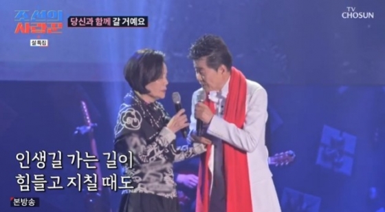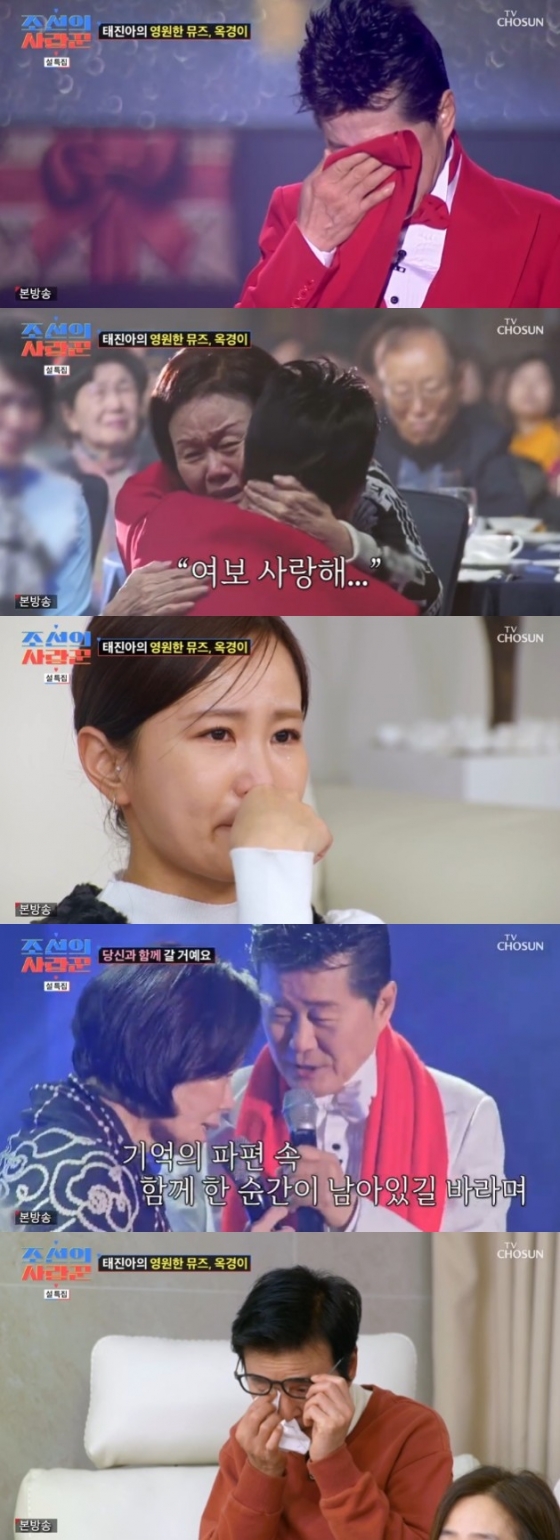 가수 태진아가 치매에 걸린 아내 옥경이와 듀엣 무대를 꾸며 보는 이들을 눈물 짓게 했다.