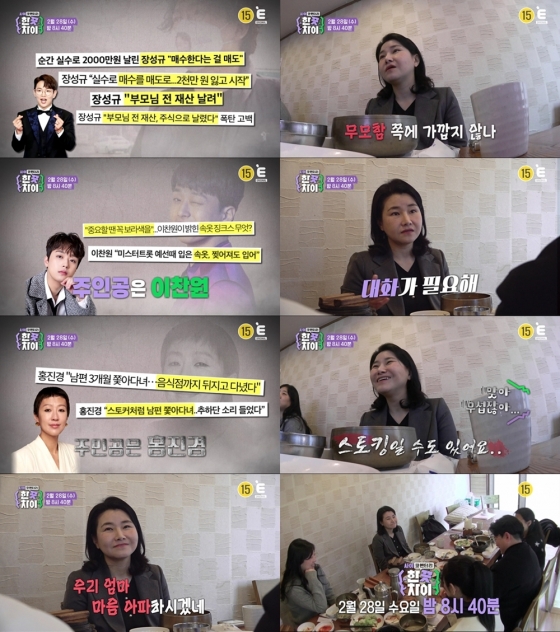 먼저 대학 시절 부모님의 돈을 주식에 투자해 모두 잃는가 하면, 매도·매수 버튼을 잘못 눌러 2천만원이라는 큰 돈을 날린 장성규의 주식 투자 에피소드가 공개됐다. 그럼에도 아직까지 주식에 대한 미련을 버리지 못했다는 장성규에 대해 박지선은 '충동성'과 '무모함'을 키워드로 꼽으며, "순간순간 본인이 하고 싶은 걸 하는 사람"이라고 꼬집었다. 그러면서 "무모함과 대범함은 한 끗 차이다. 이 무모함을 잘 살리면 대박이 날 수도 있다"라고 전했다.
