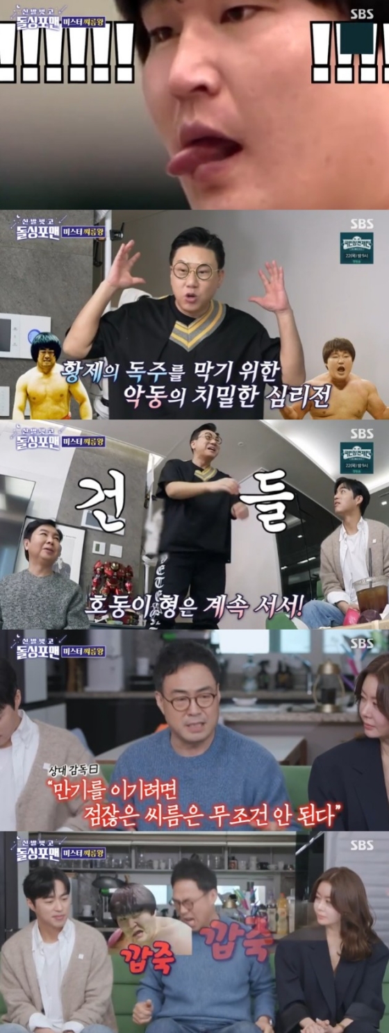 이상민은 "형님이 너무 화가나서 '깝죽거리지 마라'고 했다고. 씨름판 매너는 동시에 무릎을 꿇고 경기를 준비해야하는데 호동이 형은 계속 서서 건들거렸다고 하더라"고 얘기했다.