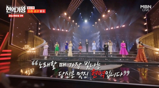 13일 방송된 MBN '현역가왕' 생방송 무대에서는 TOP10 전유진-박혜신-마이진-윤수현-김다현-별사랑-린-강혜연-김양-마리아가 마지막 결승전을 펼쳤다.
